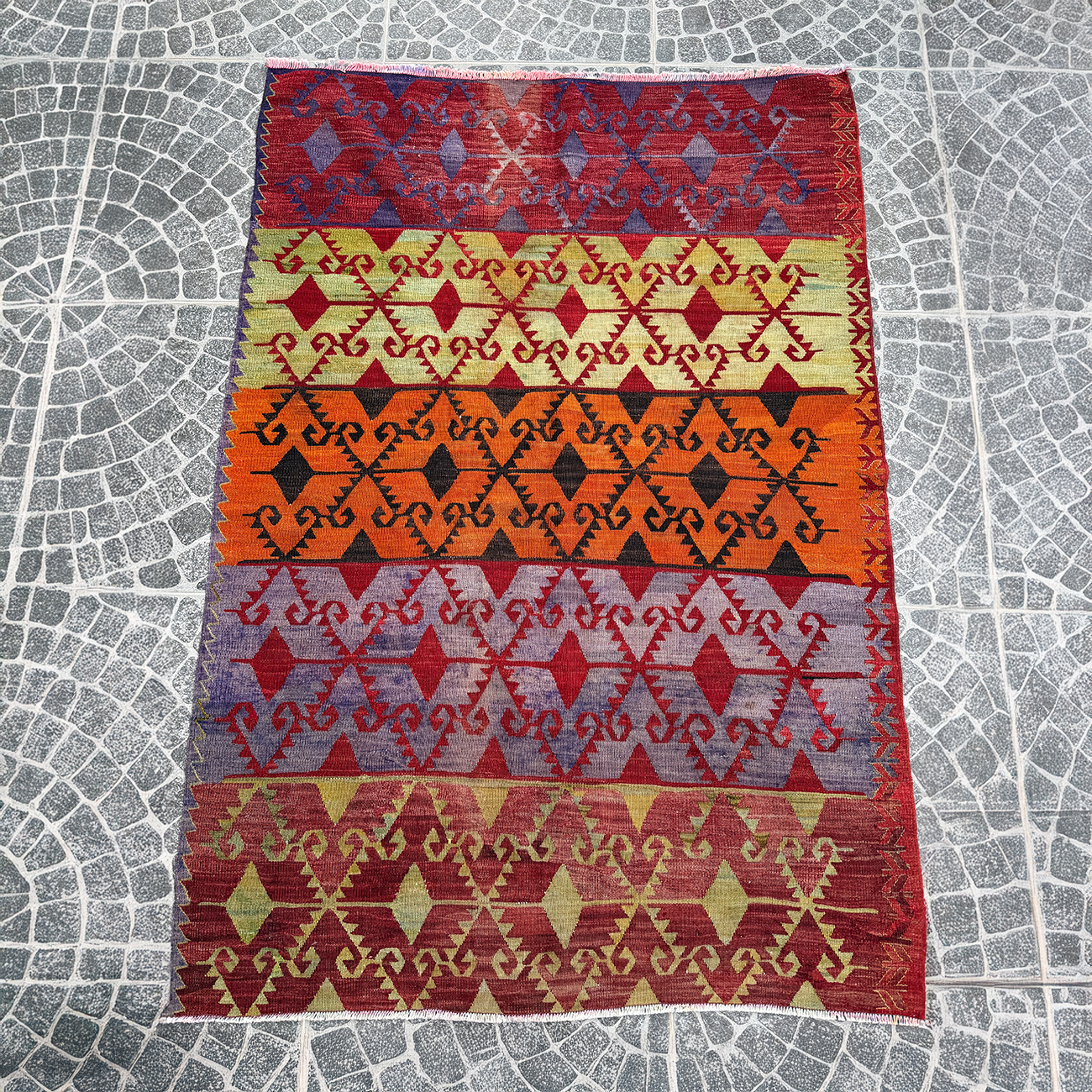 Vintage Afyon Kilim – 4.20×6.07 ft