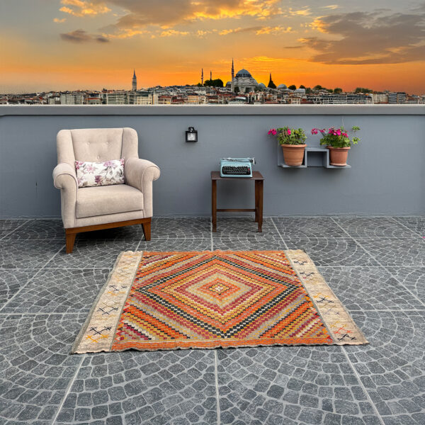Vintage Denizli Kilim – 2.89×4.00 ft