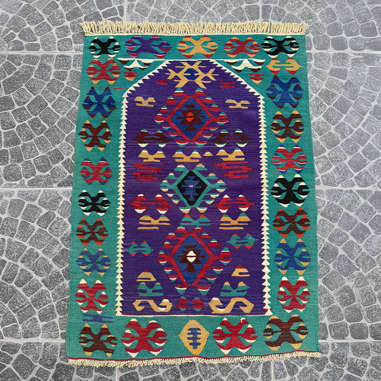 Vintage Denizli Kilim – 3.28×4.4 ft