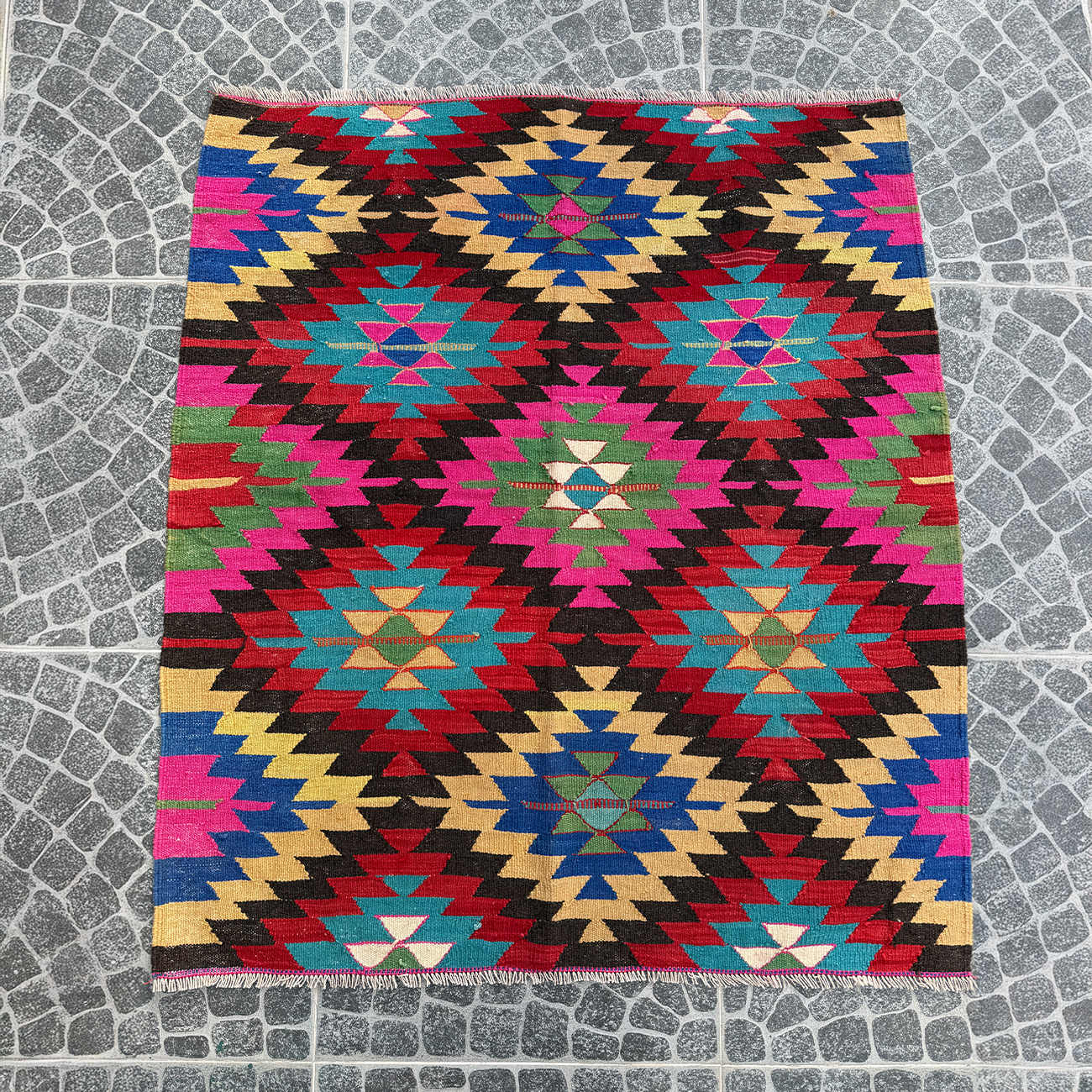 Vintage Denizli Kilim – 4.07×4.59 ft