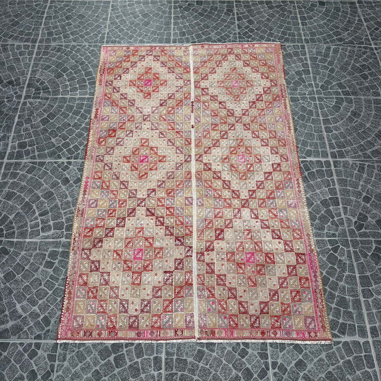 Vintage Handwoven Cicim Kilim Manisa Origin 5.18×7.74 ft