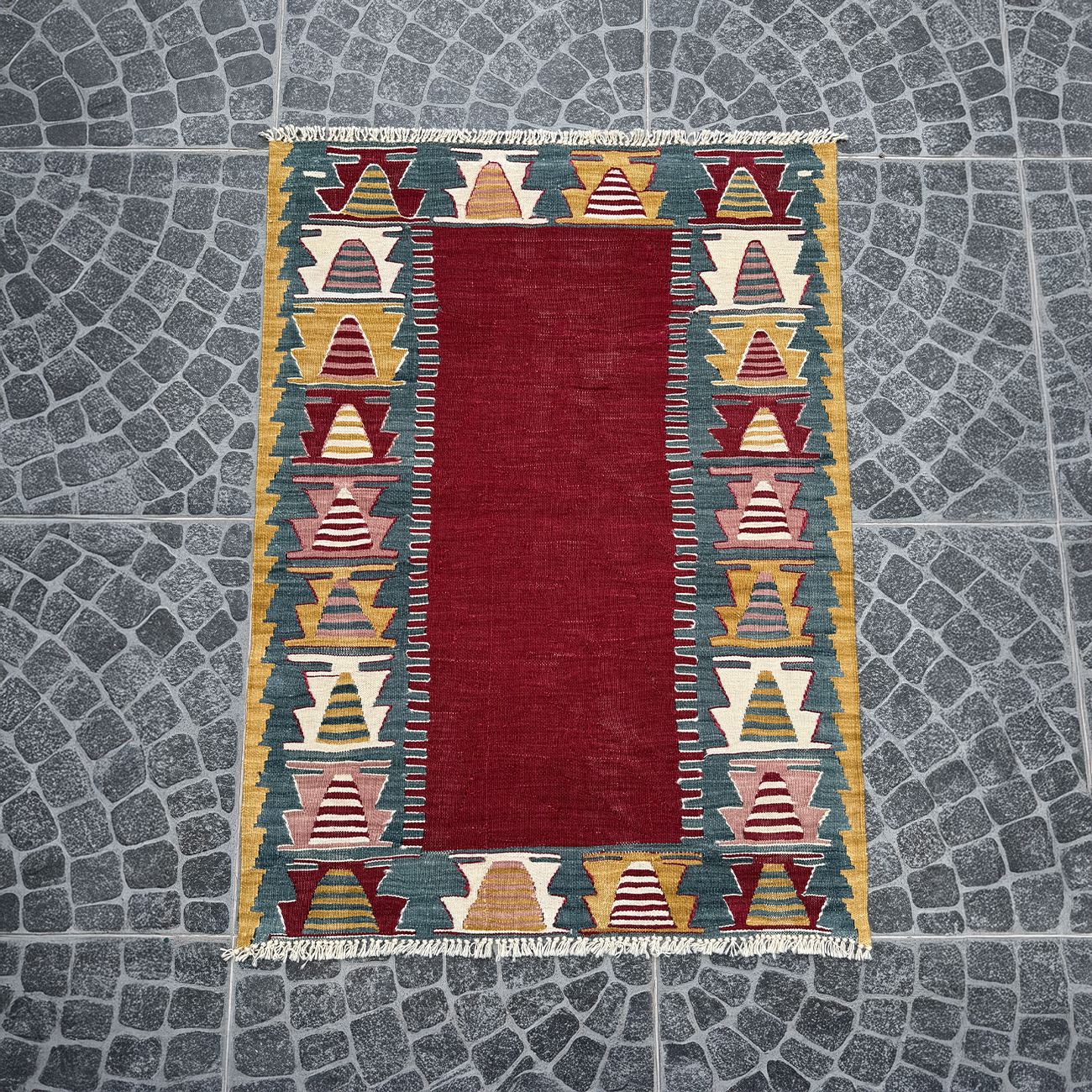Vintage Handwoven Kilim from Denizli Muska Motif Authentic Anatolian Carpet 2.95×3.94 ft