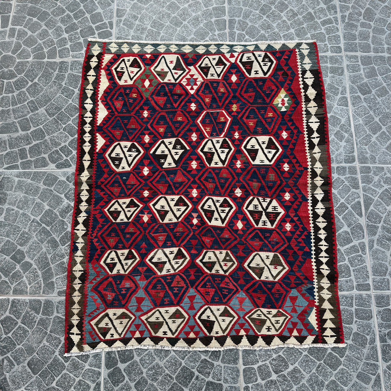 Vintage Van Kilim Hair Tie Motif 4.07×4.86 ft